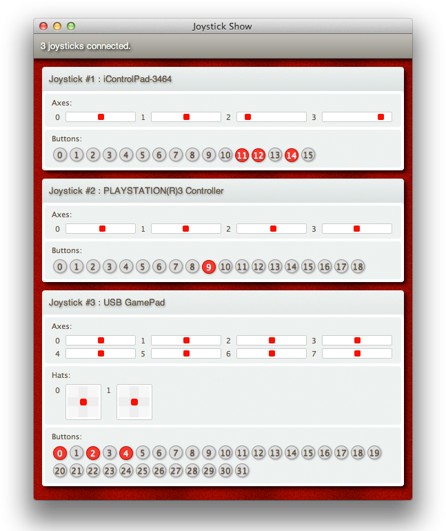 Joystick Show is a Mac OS X app that lets you test and visualize any joysticks and gamepads in a very easy and nice way.